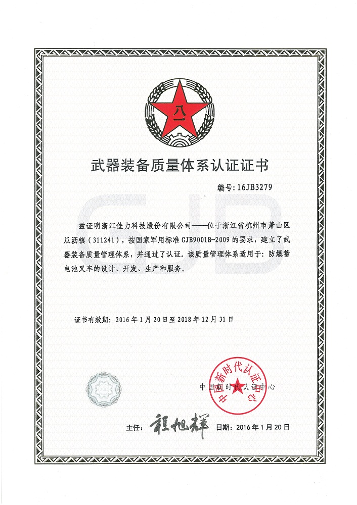 武器裝備質(zhì)量體系認(rèn)證證書