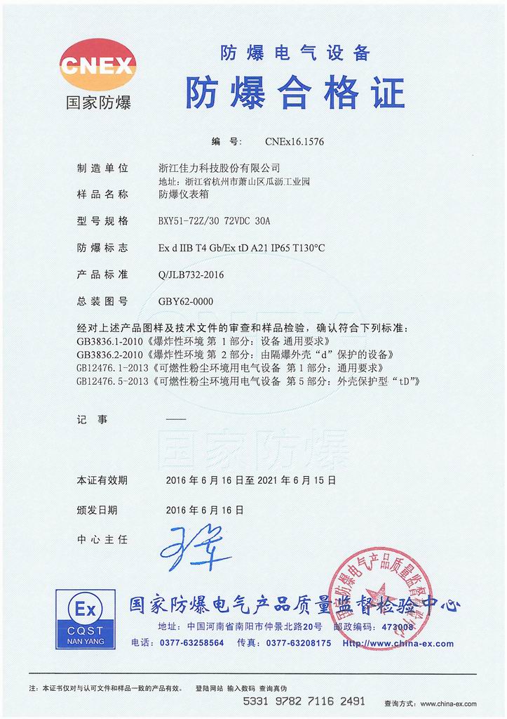 防爆證書>>詳細(xì)信息