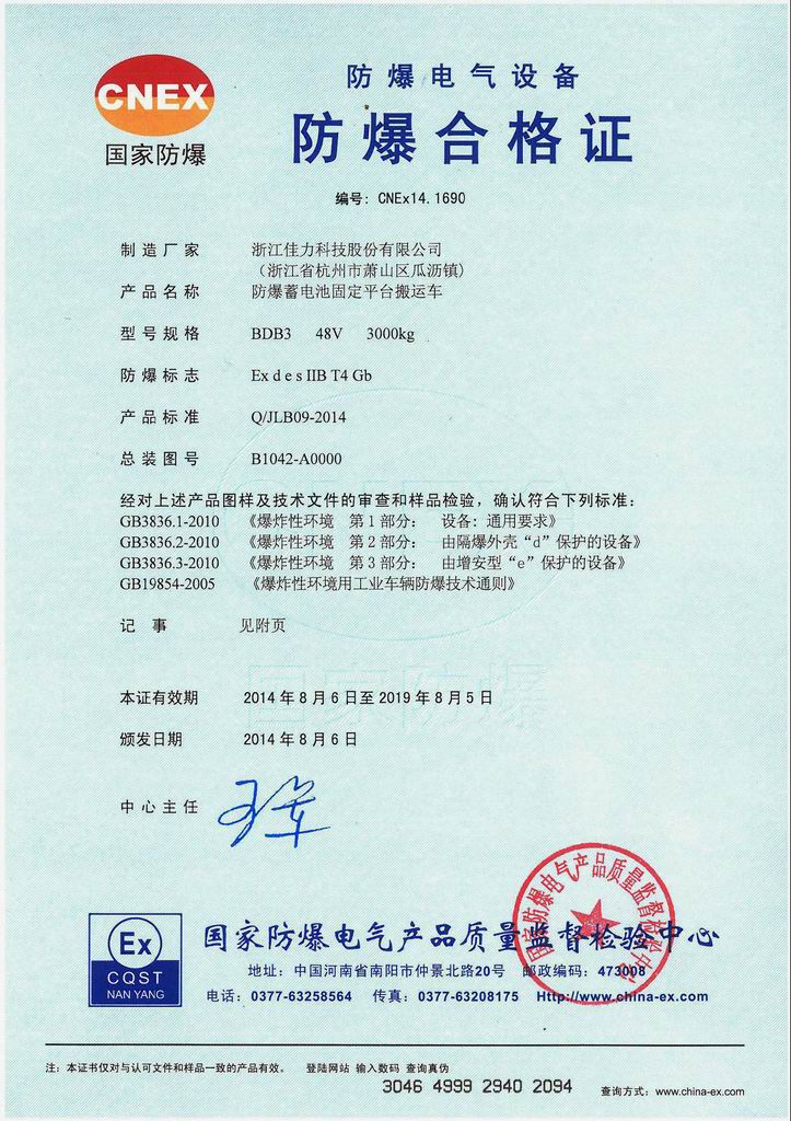 BDB3 防爆蓄電池固定平臺搬運車 氣體證書