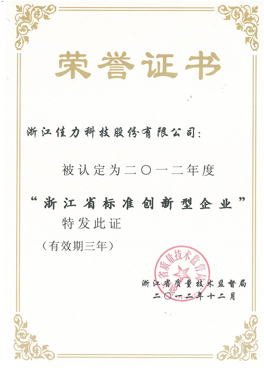 浙江省標(biāo)準(zhǔn)創(chuàng)新型企業(yè)證書